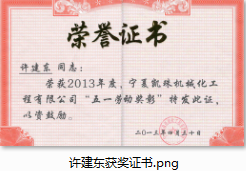 許建東同志作為公司一名普通的技術人員,在平凡的崗位上默默奉獻,幾年如一日,創(chuàng)造出了輝煌的業(yè)績。對待工作他積極主動,勤勞能干,愛崗敬業(yè);抓生產(chǎn),抓質量,盡心竭力,是我們學習的好榜樣!